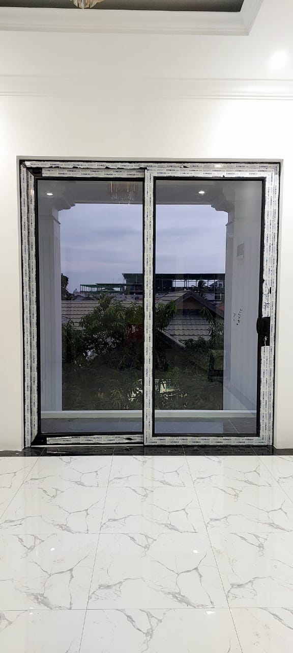 Pintu Sliding UPVC Warna Hitam+ Kaca Mati di Banjarmasin